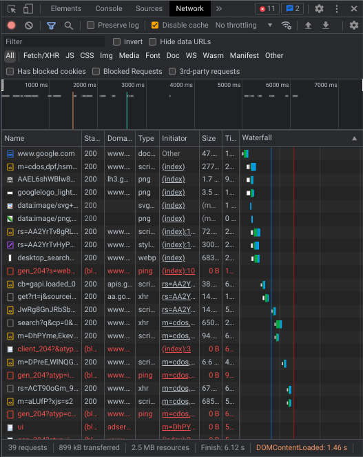 I am going to just make a silly assumption that you know how to open inspect element on your browser/device, if you do not know how, look it up. I know this might look a little scary like omg what do all these crazy buttons do!??!/1 I will guide to step by step on what all this cool stuff is. So we will go from top to bottom, and we will only go over what is needed to know how to game rip. If you want to learn more, just play around with it or consult the wiki. THe screenshot above is the search page for google, (it is just google.com) and you can see, there is alot of stuff, that is because google is complex as fuck, so we will try something more simple.